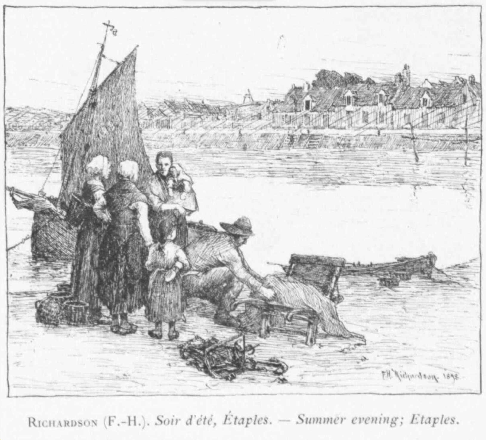 1893 – Marries Frances Hill – begins to spend summers at a small coastal French village near Holland (Etaples) where he finds new inspiration from the local fisher folk at work